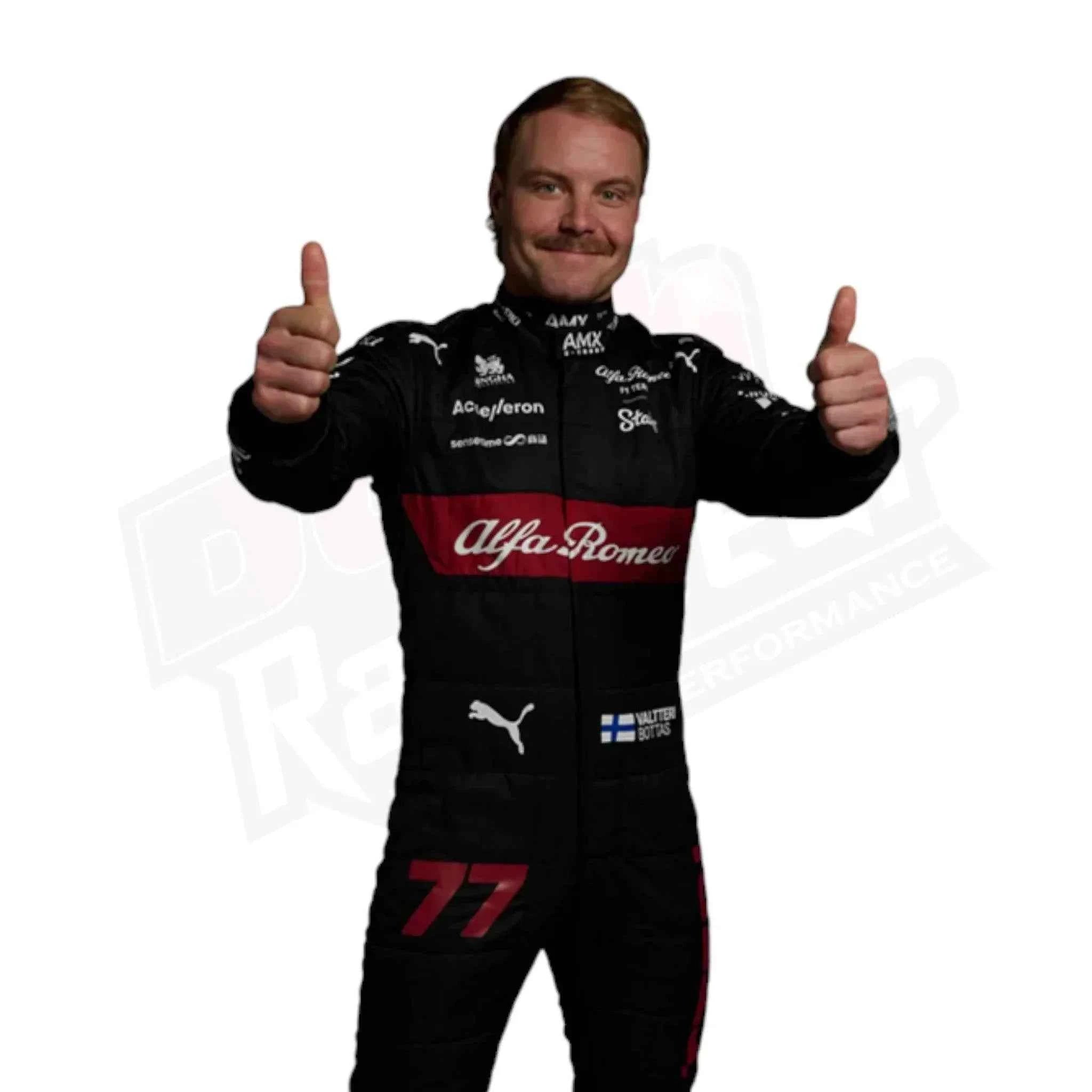 Wir präsentieren den Valtteri Bottas Alfa Romeo Rennanzug 2023 für Kinder. Dieser Rennanzug aus hochwertigen Materialien bietet maximalen Komfort und Schutz während des Rennens. Entfessle den Rennfahrer in dir und starte selbstbewusst auf der Rennstrecke in diesem neuen und verbesserten Anzug.