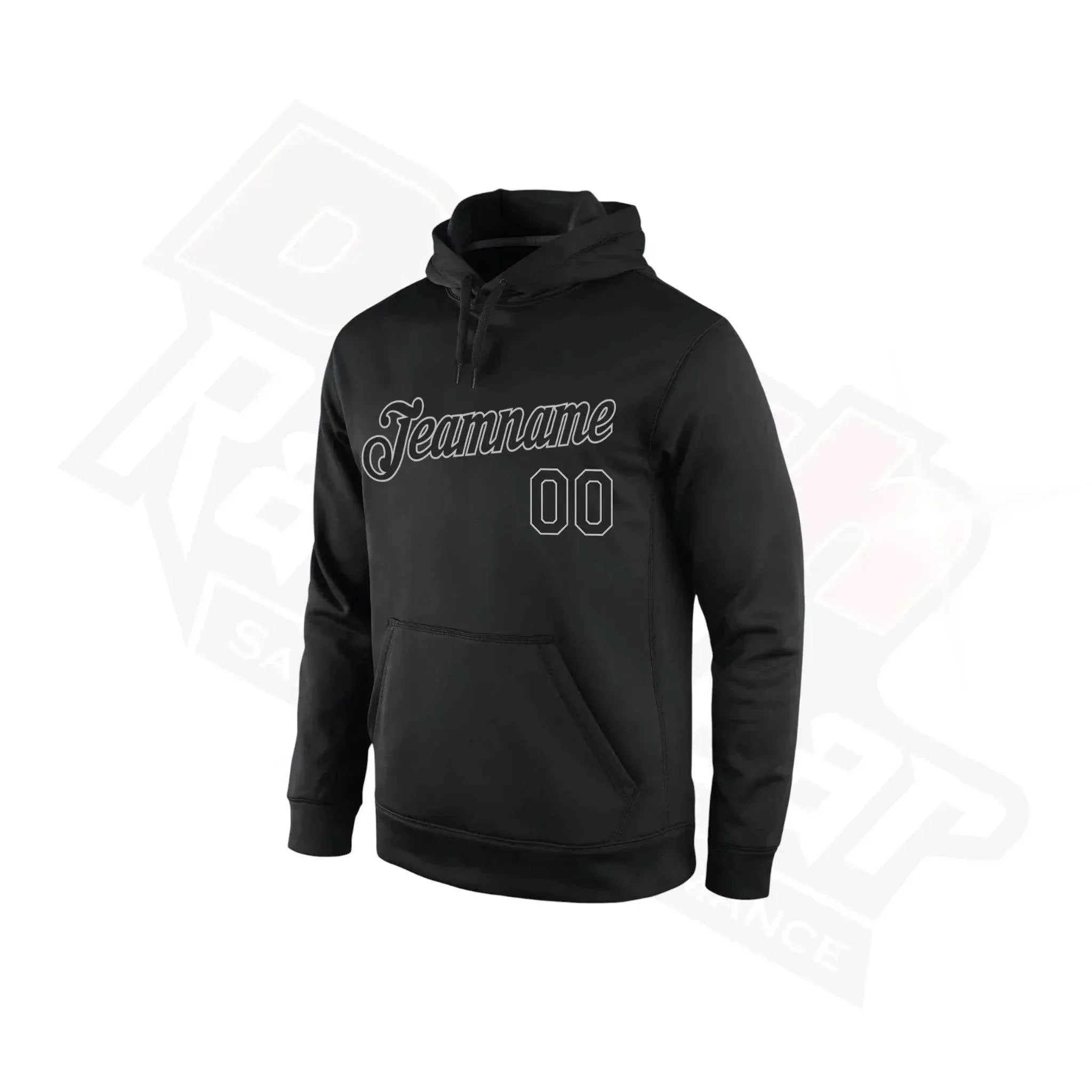 Individuell genähter schwarzer und grauer Sport-Pullover-Hoodie