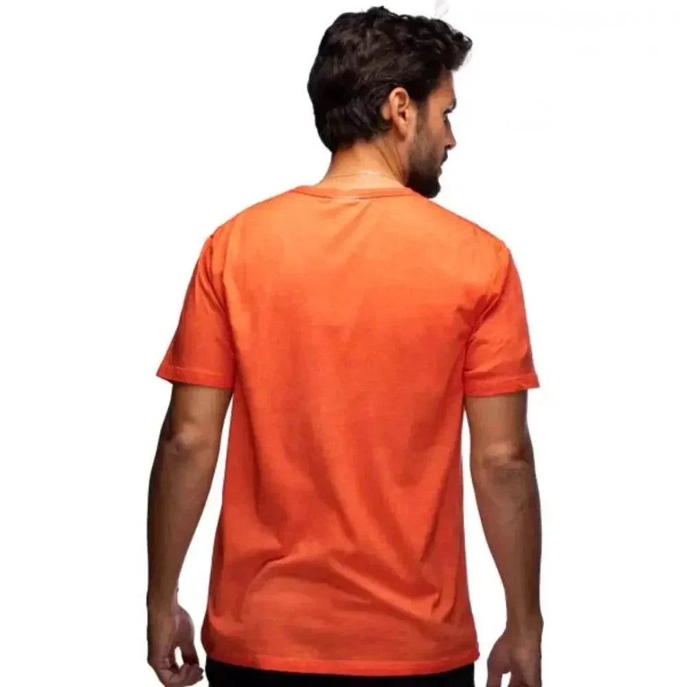 Das orangefarbene Race Legend T-Shirt ist aus hochwertiger Baumwolle gefertigt. Das Shirt aus der James Hunt Kollektion hat einen großen Aufdruck auf der Brust und eine aufgestickte Union-Jack-Flagge von Hunt am unteren Saum.